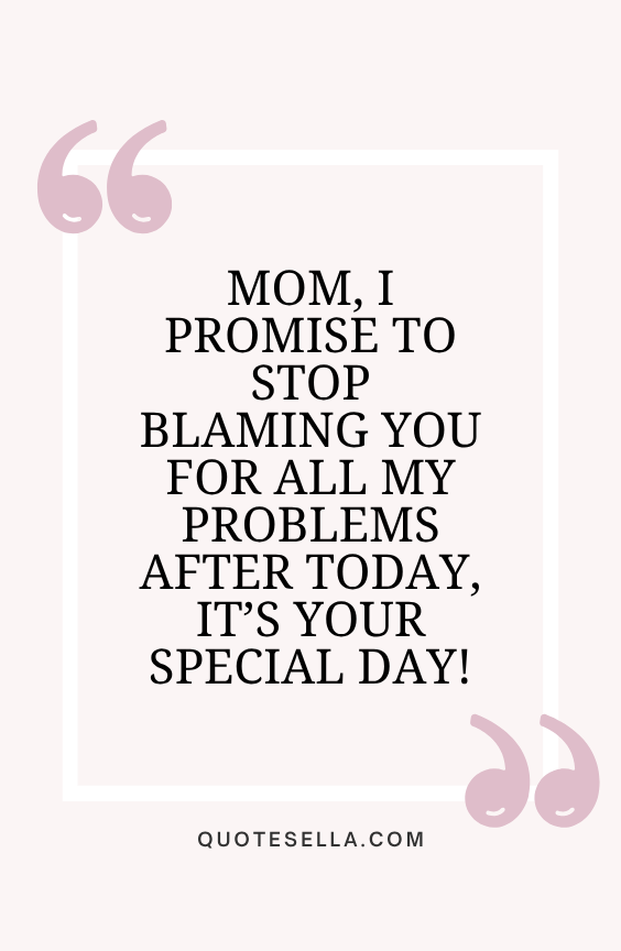 - “Mom, I promise to stop blaming you for all my problems after today – it’s your special day! Happy birthday.”
